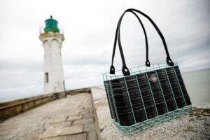 Metal basket handwoven with upcycled bicycle air chambers TRADI blue