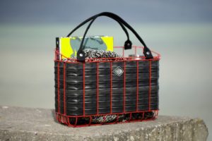 Metal basket handwoven with upcycled bicycle air chambers TRADI red