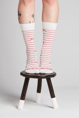 Linen socks made in France – « Booo Lines » pattern – White and Casper