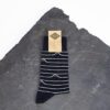 Linen socks made in France – « Booo Lines » pattern – Black and Mummy