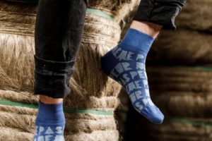 Linen socks made in France – “Même pas peur” pattern – Blue and Dawn.