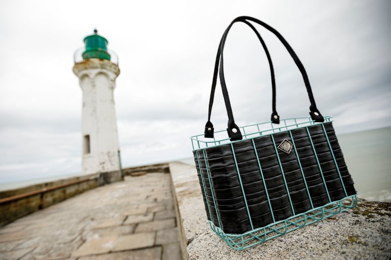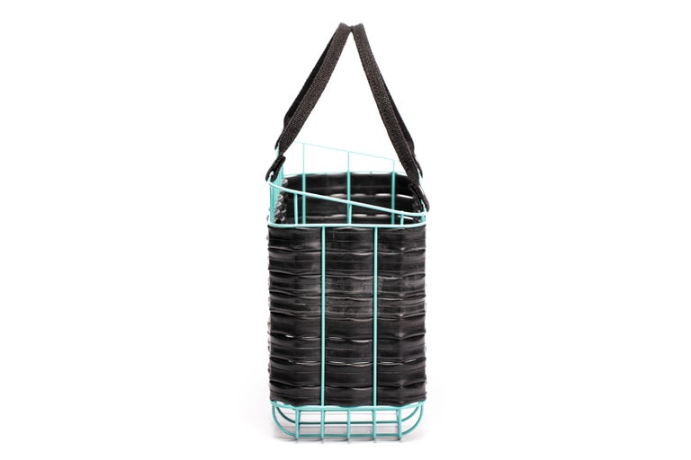 A metal structured basket handwoven with bicycle inner tubes. Its elegance, its robustness and its design will seduce you. You will appreciate its pleasant dimensions to do your shopping or transport your food for a picnic or a walk.