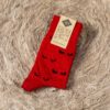 Chaussettes en lin made in France – Motif « Même pas peur » all over Rouge et Nuit.