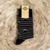 Chaussettes en Lin made in France – Motif Lignes Booo Noir et Momie