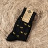 Chaussettes en lin – Motif « Les yeux du chat » Blanc et Obsidienne
