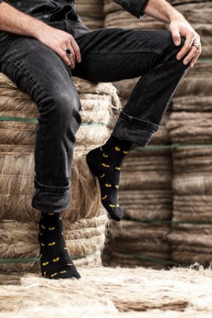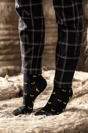 Chaussettes en lin – Motif « Les yeux du chat » Noir et Soufre