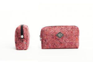 - Textile ROSE/ROUGE : feutrine réalisée à partir de vêtements en fin de vie n’ayant pas de débouchés dans le circuit de la seconde main, effilochés puis compactés et liés avec du PET recyclé. Textile de fabrication néerlandaise. contient des fibres animales recyclées.