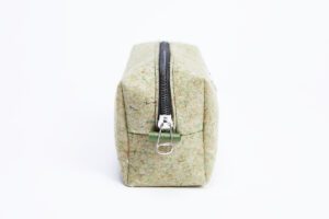 - Textile principal : feutrine réalisée à partir d'uniformes de l'armée n’ayant pas de débouchés en seconde main, effilochés puis compactés liés avec du PET recyclé. Textile de fabrication néerlandaise. Vert kaki clair majoritaire, pointe de sable et de beige. pointe de noir et de bleu. Exempt de toute matière d’origine animale. --> VEGAN